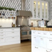 Для кухни следует выбрать панели MDF или HDF, имеющие более высокие показатели устойчивости к влаге. Это относительно недорогой материал, его возможно уложить самостоятельно, устойчив к химическим и механическим воздействиям, хорошо амортизирует удары. К недостаткам можно отнести ненатуральность, возможность выделения запаха, плохую поглащаемость звуков, трудность восстановления.