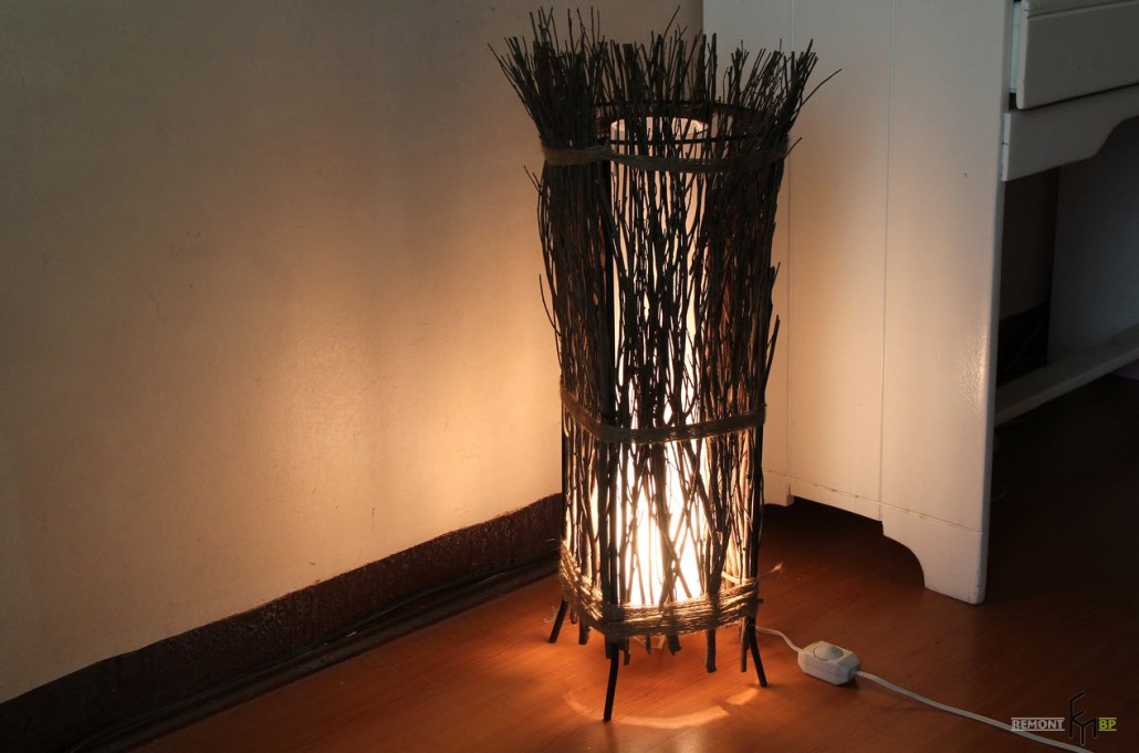 при желании ветки можно перевязать веревкой и в середине лампы;