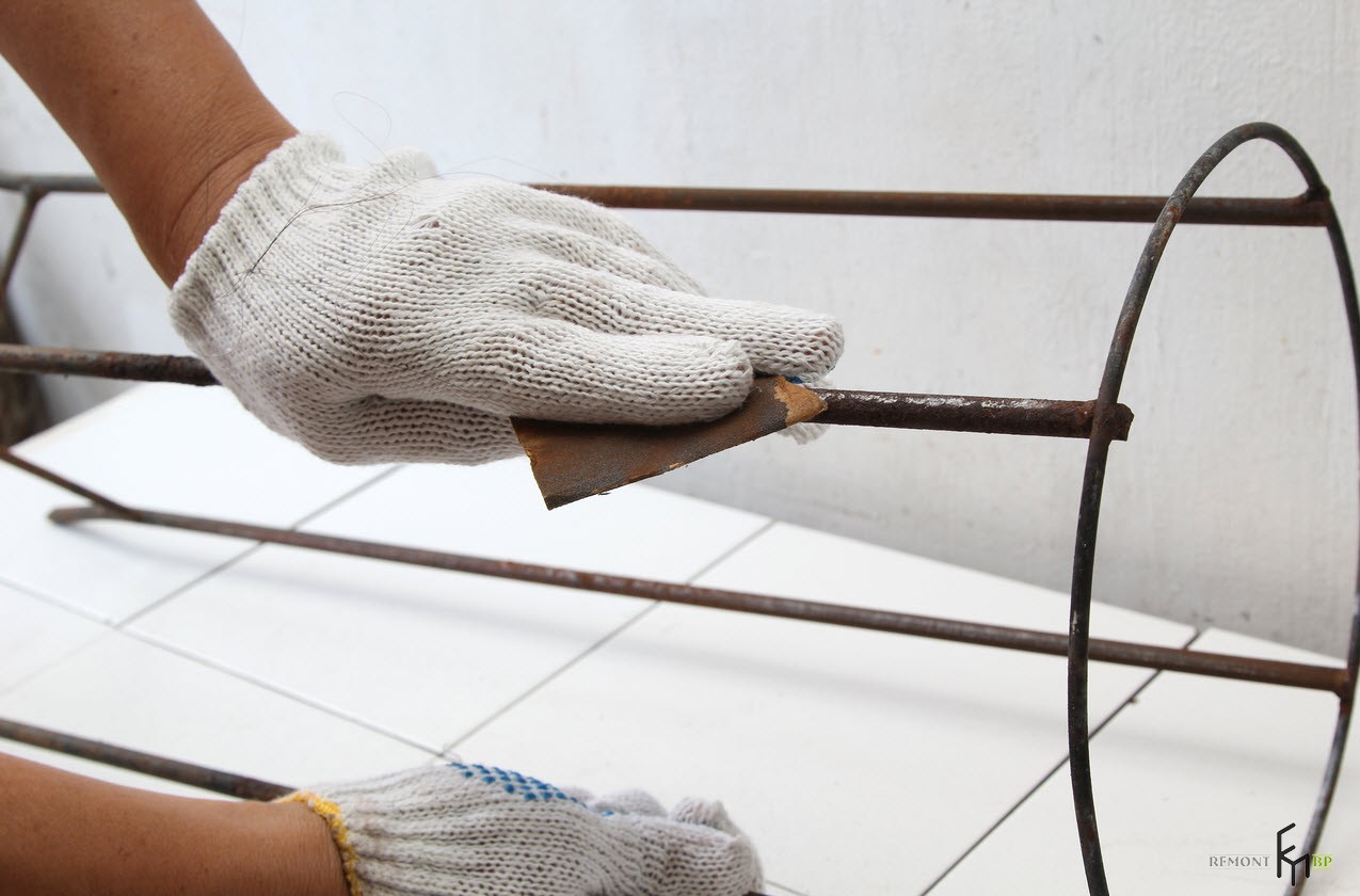 после этого необходимо соскоблить ржавчину, например, при помощи шкурки;