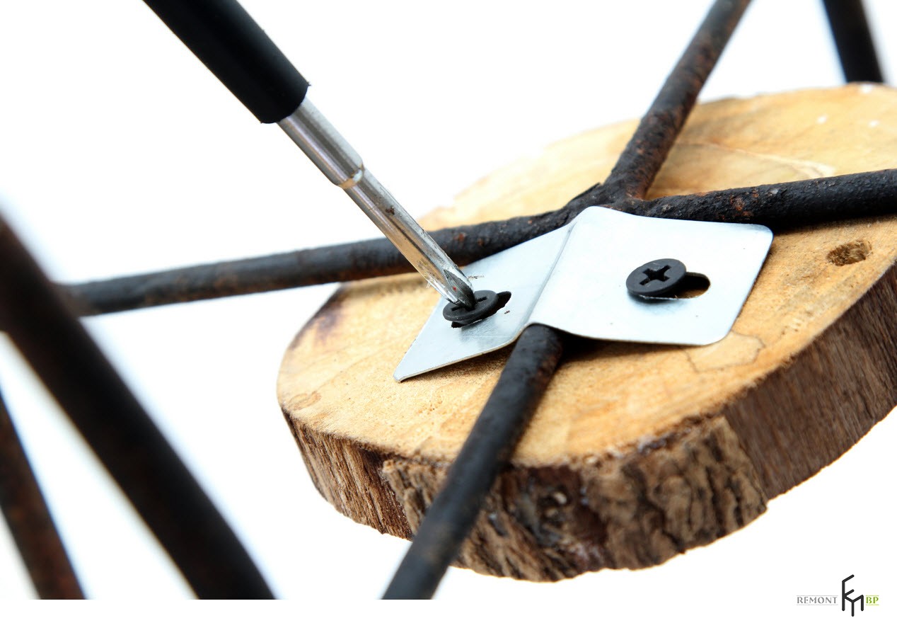 далее следует установить металлическую скобку, которая будет держать основу, просверлив с двух сторон отверстия;