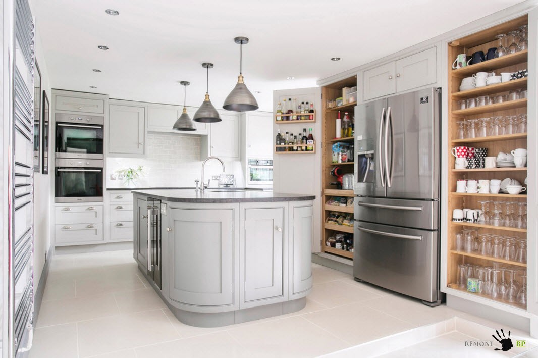 Все оттенки серого и бежевого цвета являются практически универсальными для напольного покрытия. Такие изделия подойдут для облицовки полов пространства любого стилистического направления и будут отлично сочетаться с любым из вариантов оформления кухонной мебели и остальной отделки помещения.