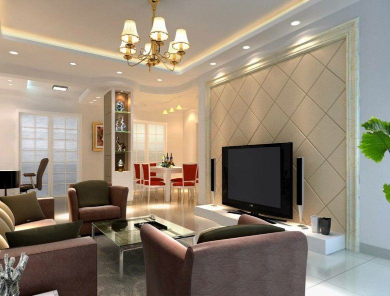 Отличный современный осветительный прибор под названием спот станет прекрасным дополнением к люстре, также можно использовать несколько подходящих по форме и дизайну спотов для качественного рассредоточенного освещения гостиной. Из спотов можно сделать узоры или осветить определенную зону гостиной.