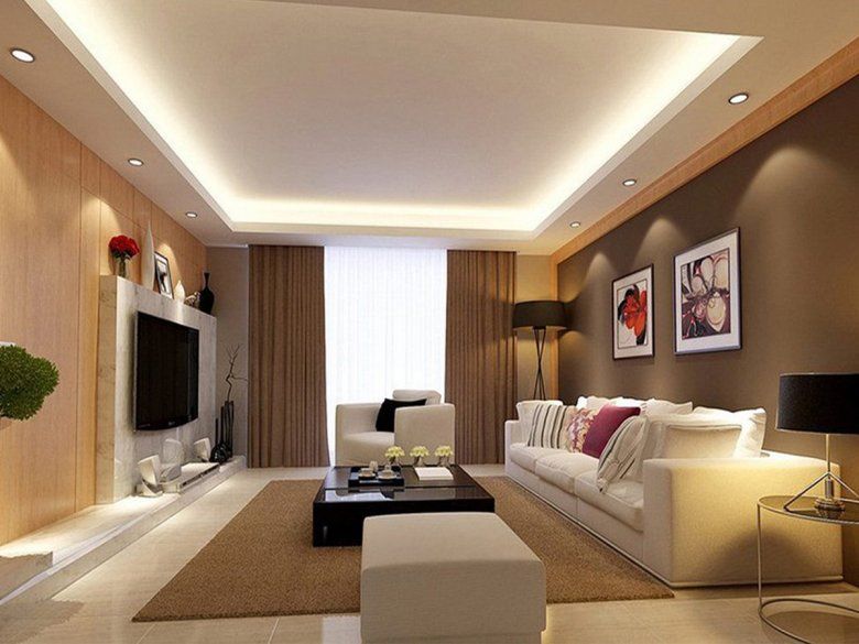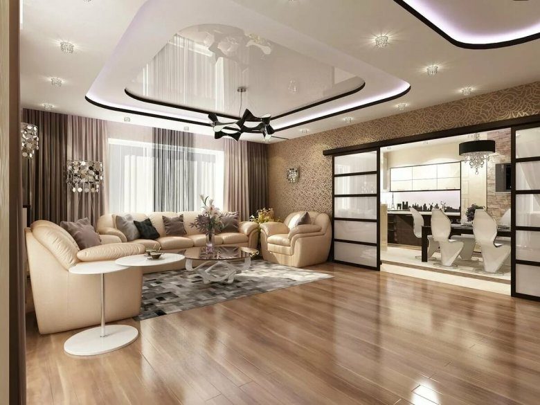 Натяжные потолки в гостиной – эффектный элемент интерьера