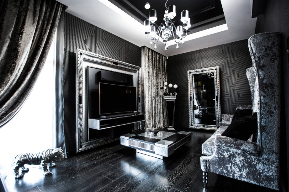 На сегодняшний день натяжные потолки представлены в четырех основных видах поверхности: глянцевая, матовая, сатиновая, фактурная или с рисунком. Форма полотна будет зависеть от ваших предпочтений и предварительного дизайн-проекта интерьера гостиной. Для замера и монтажа натяжного потолка лучше обратиться к опытным и проверенным специалистам в этой области.