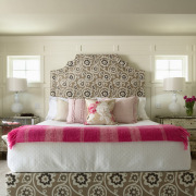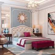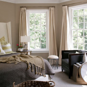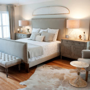 Идейный центр спальни – это кровать, поэтому все текстильные элементы должны гармонично сочетаться с покрывалом – декоративные подушки, шторы, ковры и конечно постельное белье и пледы.