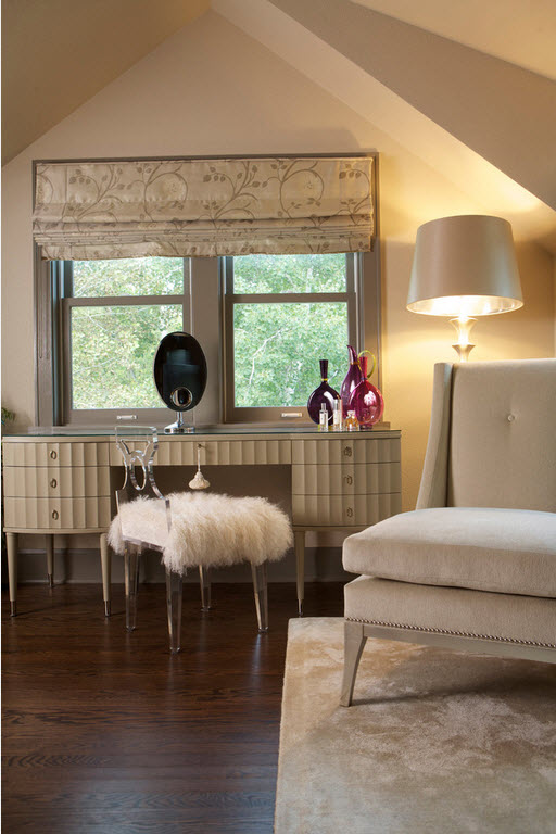 Стул в спальне – предмет необязательный и несамостоятельный. Стул всегда при чем-то, например, если в спальне есть туалетный столик. Да и то, скорее при нем будет небольшая изящная банкетка, а не полноценный стул. Вот и получается, что единственный шанс стулу законно проникнуть в интерьер спальни – это пристроится к письменному столу. А если таковой в спальне не предусмотрен, то и стулу здесь не место.