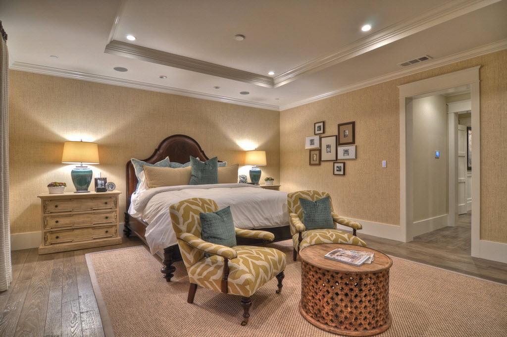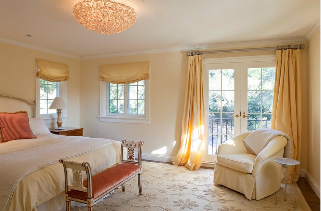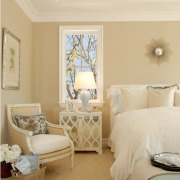 Спальня в бежевых тонах – популярнейший тренд в экодизайне. Это естественный цвет необработанных льняных, хлопчатобумажных и конопляных тканей. Такие обивки, коврики и покрывала отлично смотрятся в спальне стиля кантри, этно и прованс. Хотя в последнем чаще доминируют ткани с цветочным рисунком.