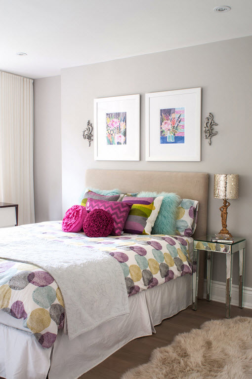 Цветовые решения могут быть любыми и зависят от личных предпочтений и стиля, в котором оформляется спальня. Белый цвет считается универсальным, кремовые нотки придадут интерьеру мягкость, а небольшие яркие штрихи, например цветные декоративные подушки, придадут интерьеру особого шарма.