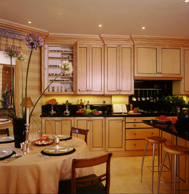 Кухонное пространство, оформленное в соответствии с концепцией неоклассицизма – это настолько же функциональное, насколько и респектабельное помещение. Строгость планировки и выбор натуральных материалов с одной стороны создает невероятно практичную, эргономичную и удобную обстановку, но с другой – всегда обходится « в копеечку» хозяевам. Интерьер кухни, созданной в стиле неоклассика, будет актуален долгие годы, ваши вложения окупятся прекрасным внешним видом отделки помещения и кухонных фасадов, выполненных из натуральных материалов (или их эффектных аналогов) с немного вычурной для современной меблировки фурнитурой.