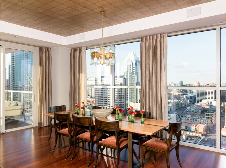 У многих из нас классический интерьер неизбежно ассоциируется с богатыми драпировками окон. Роскошные ткани, ниспадающие большими складками до самого пола, перехваты с кистями, вычурные зажимы, ламбрекены и воланы – все это составляющие классических, роскошных интерьеров. Неоклассика более демократичная в вопросе декорирования. Идеальный выбор драпировки для оконных проемов – дорогая ткань высокого качества, ниспадающая ровными складками в модели традиционных прямых штор.