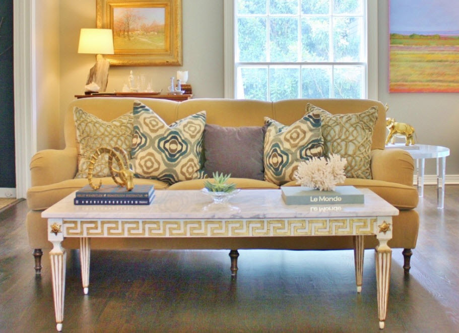 При планировании расстановки мебели в комнате, оформляемой в неоклассическом стиле, важно учесть каждую мелочь. Меблировка расставляется в соответствии с каноническими принципами симметрии, разреженности и пропорциональности. Например, в рамках гостиной проще всего выстроить симметрию вокруг камина – зеркало на уровне глаз над очагом, пара одинаковых кресел возле него, кофейный столик в центре или пара небольших подставок (тумб) аналогичного дизайна, расставленных симметрично мягкой мебели – все эти приемы позволяют создать некоторую зеркальность интерьера, привносящую упорядоченность и лаконичность в общую картину помещения.
