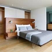 Темная спальня может быть оформлена коричневыми тонами, которые хоть и относятся к холодной гамме, но несут в себе мягкость и уверенность земли. Деревянные мотивы здесь прекрасно смотрятся.
