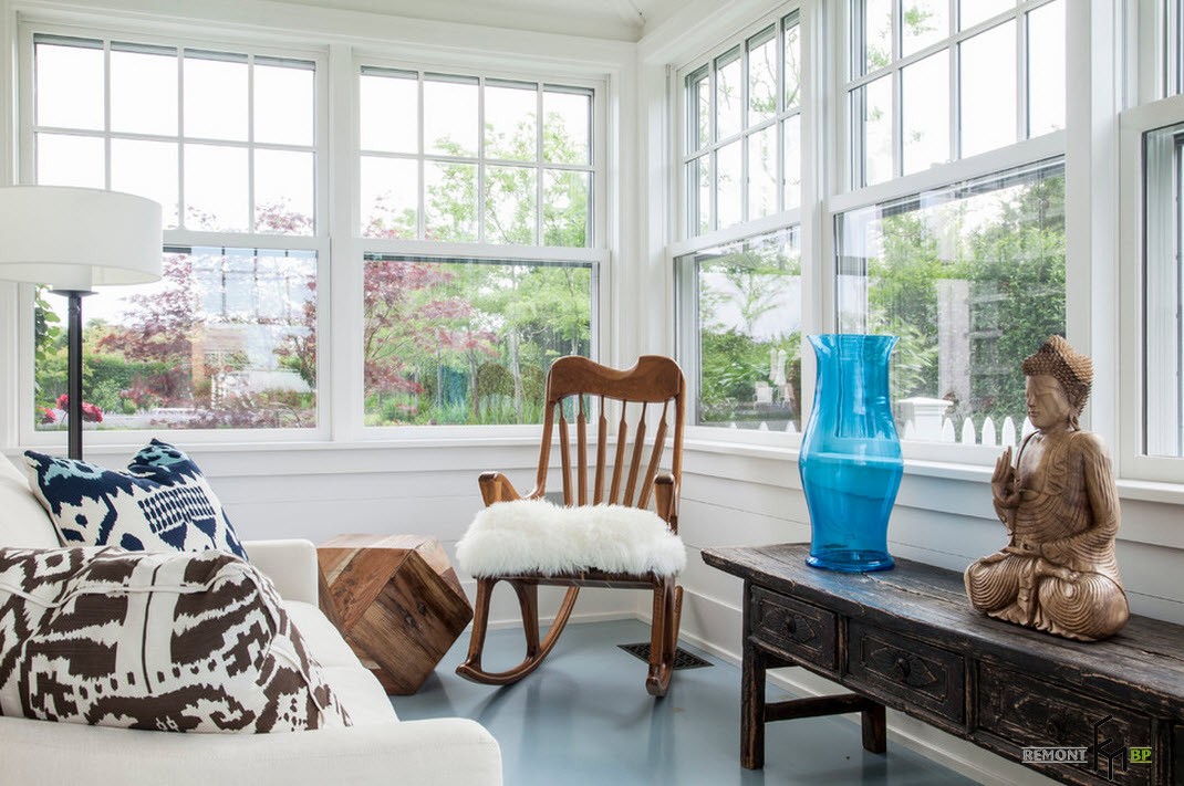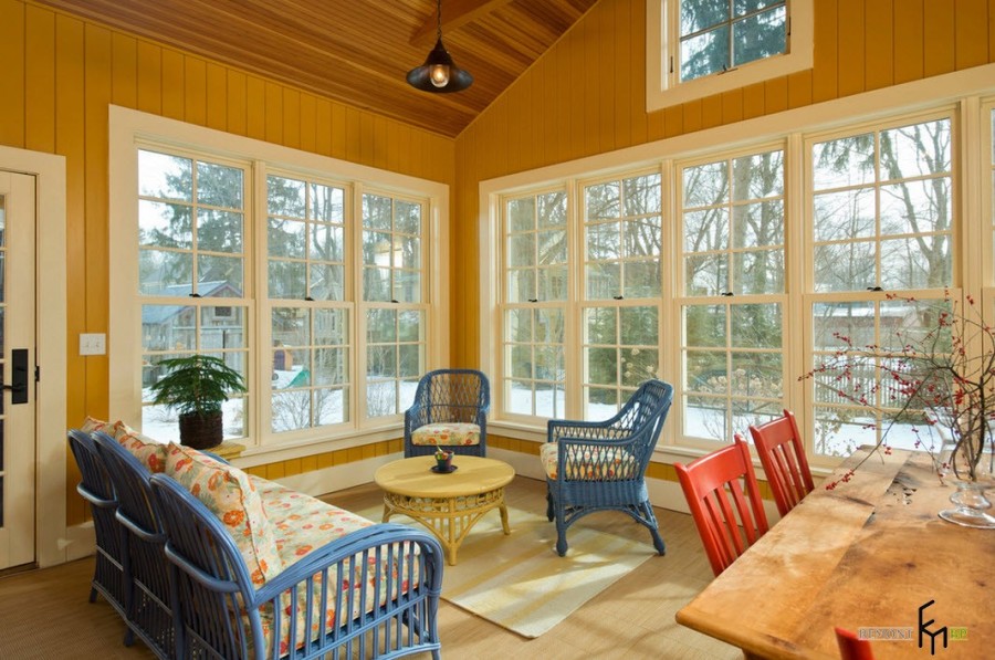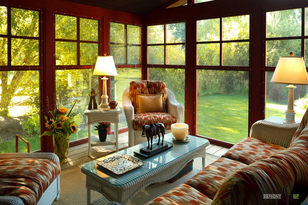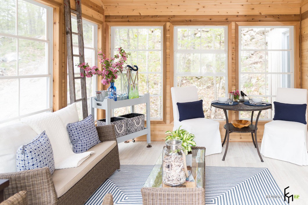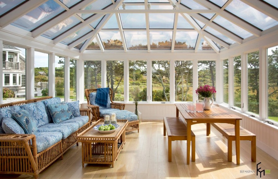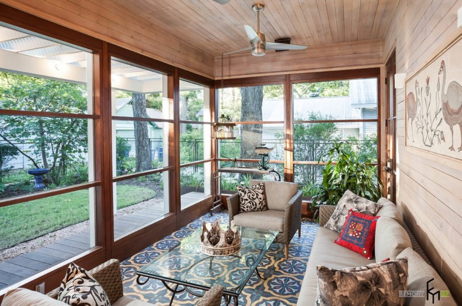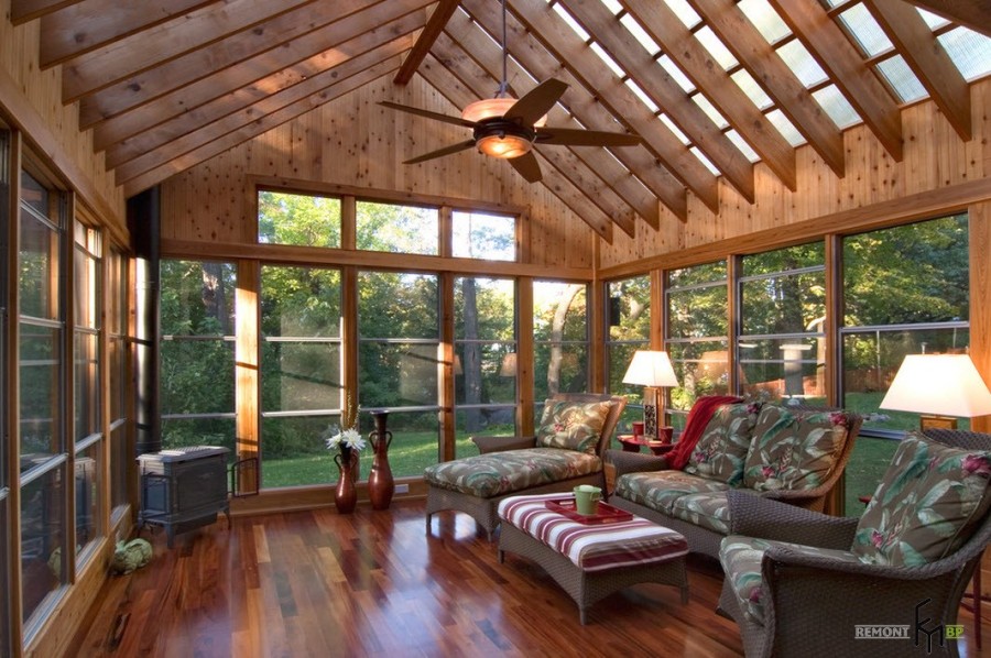 В наше время все большее количество горожан стремятся хотя бы на выходные покинуть шумные и пыльные улицы мегаполисов и расслабиться в загородном доме или на даче, поближе к природе. Современные загородные дома редко обходятся без веранды или крытой террасы. Даже, если дом был построен достаточно давно, пристроить к главному входу небольшую веранду не составит большого труда. И далее встает вопрос обустройства помещения, которое не является главным на даче или в загородном особняке, но выполняет немало функций.