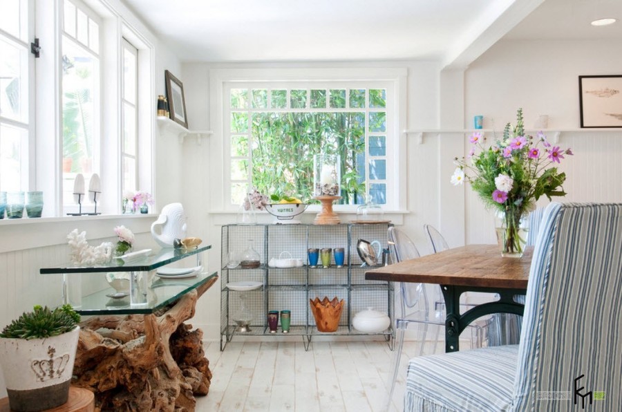 Использование в интерьере террасы светлые и даже белоснежные оттенки позволяет не только визуально расширить пространство, но и создать по-настоящему праздничное, нарядное настроение помещения.