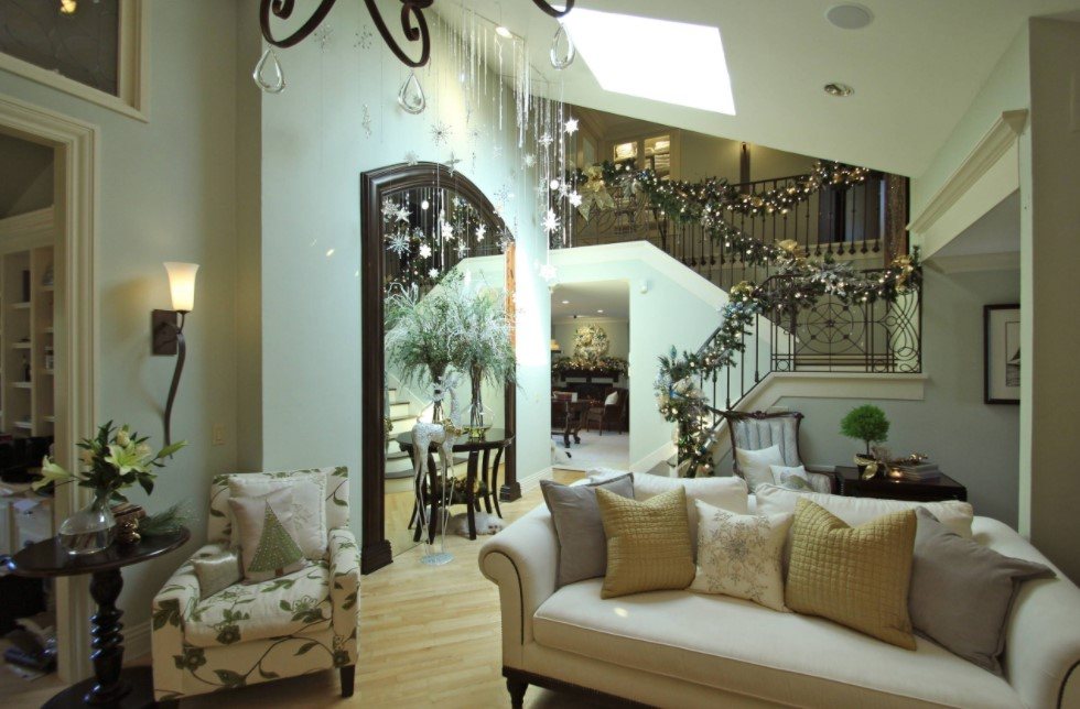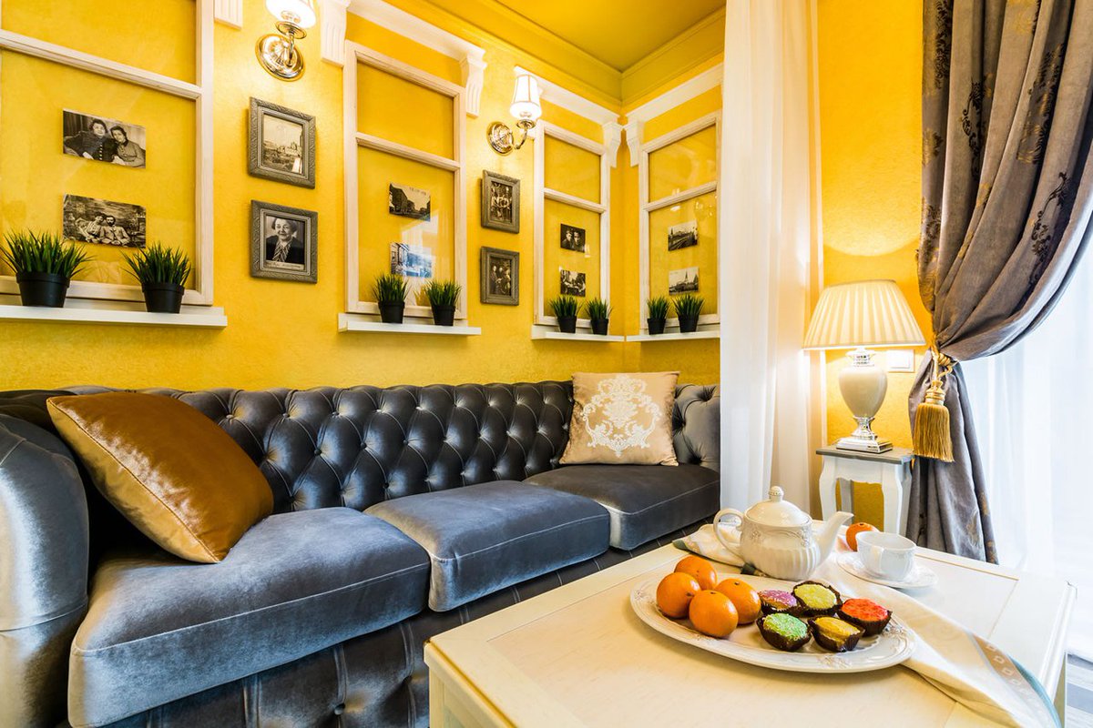 - Акцентное освещение: равномерно распределите настольные лампы, торшеры и настенные бра.