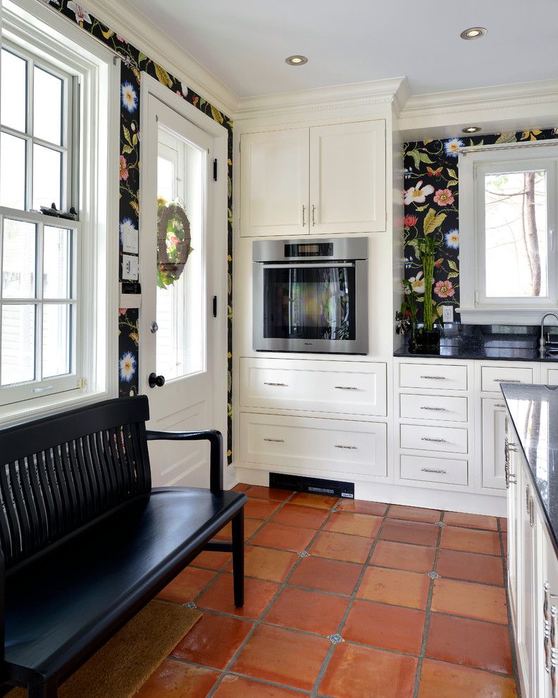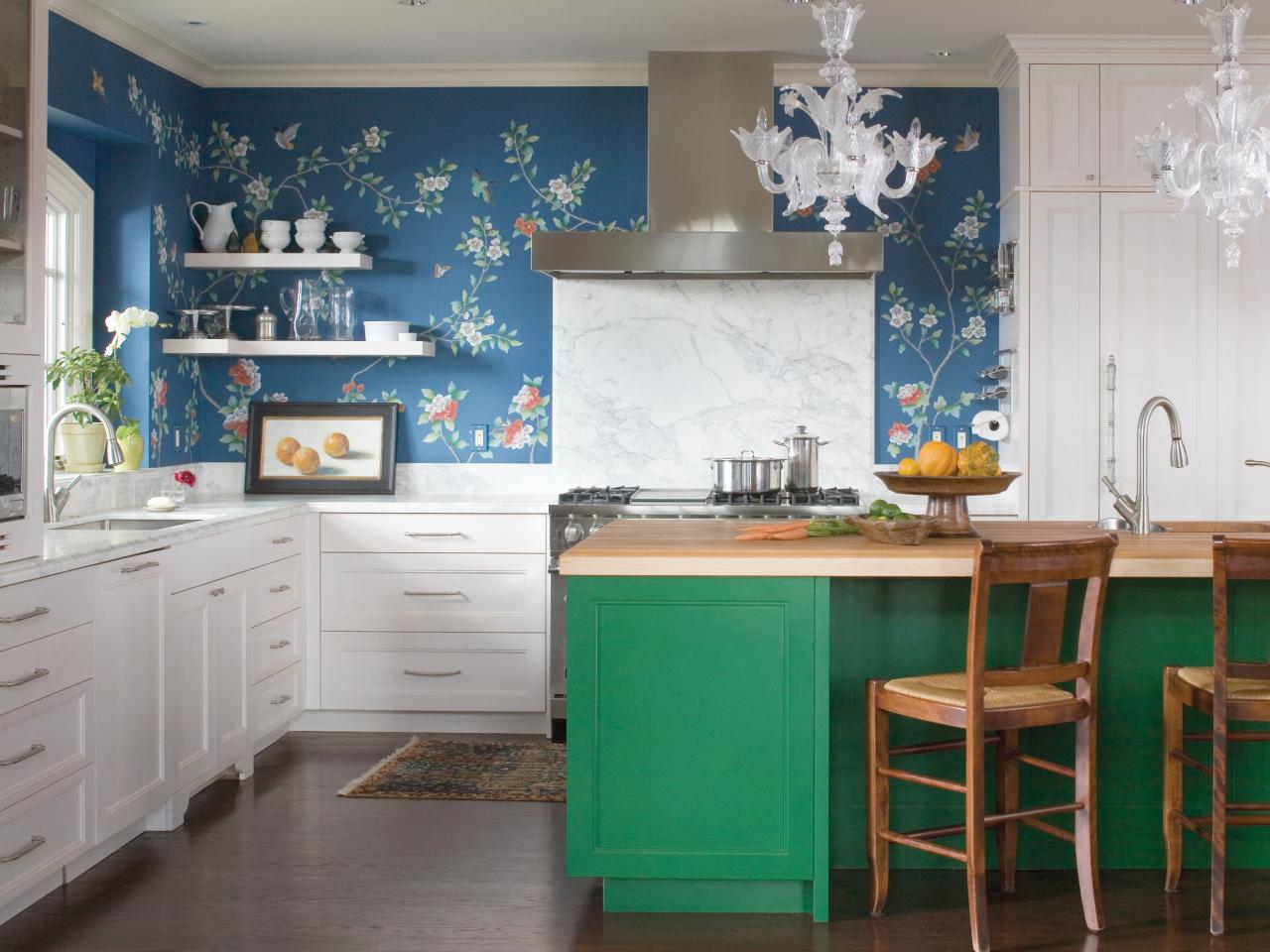 - цветочные обои нейтральных оттенков – отличное решение в создании акцентов в современных кухонных интерьерах.