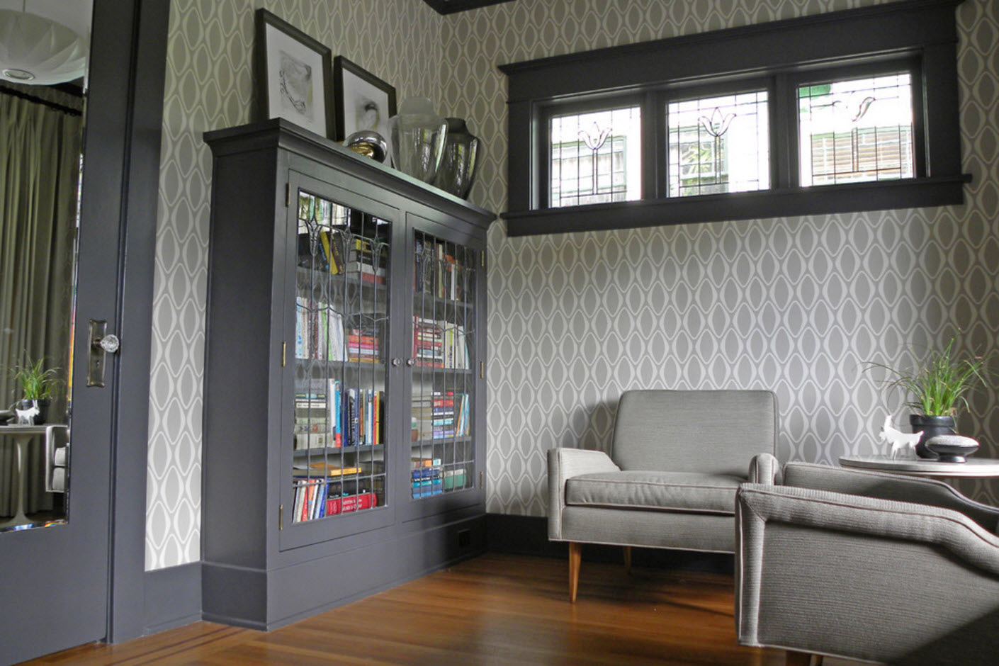 - темные обои (контрастный рисунок с использованием темных тонов) имеет смысл выбирать в качестве акцента в помещениях с хорошим естественным освещением (панорамные окна или несколько оконных проемов среднего размера).