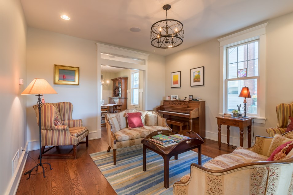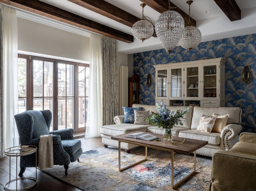 Флизелиновые или виниловые обои считаются более износостойкими и эластичными. Они могут прослужить до 30 лет, защищая при этом стены от образования трещин даже при усадке дома. Виниловое покрытие имеет рельефную структуру. Однако для покраски следует выбирать качественных производителей, чтобы поверхность не деформировалась во время окрашивания. Такой вид отделки не подходит для детских комнат и спален, так как не пропускает воздух. Зато в других помещениях флизелиновое покрытие способно кардинально поменять обстановку.
