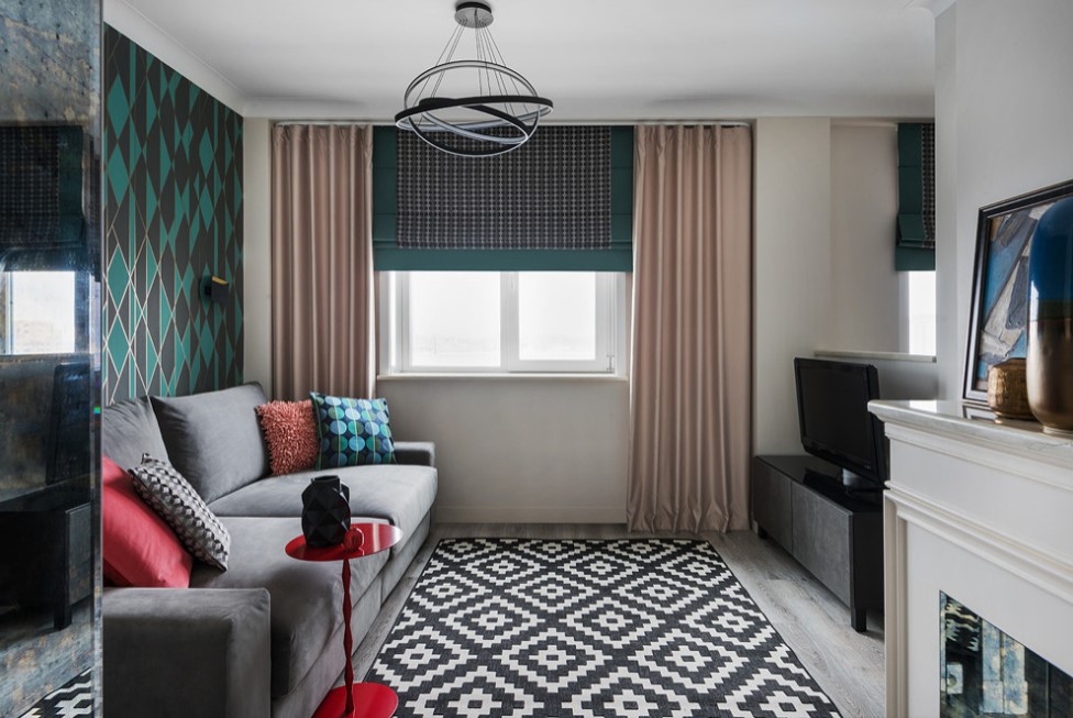 - Ромбы. Узор подходит минималистическому, современному и скандинавскому интерьеру за счет угловатых четких форм геометрического принта.