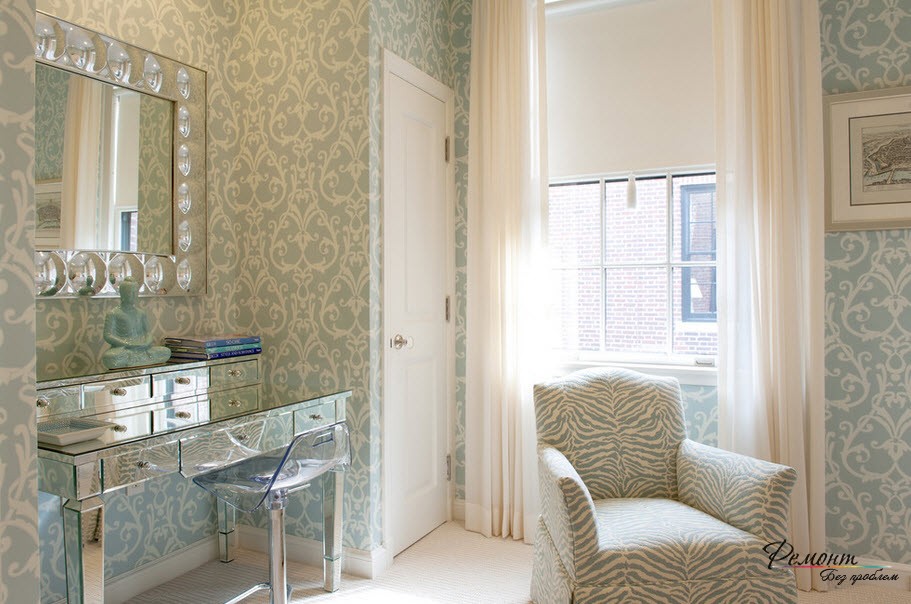 Администратор2014-07-29 17:24:332014-07-29 17:24:33Спокойный светлый узорчатый рисунок на обоях служит прекрасным фоном для выделения выразтиельных предметов интерьера