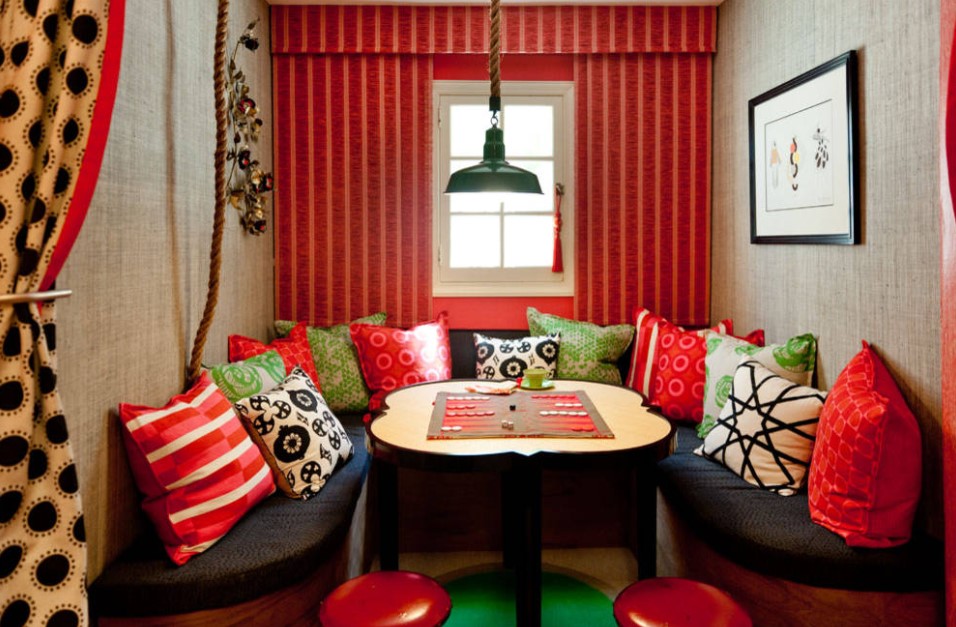 Благодаря популярности ретро-стилей в интерьерах в моду вошли соответствующие геометрические рисунки. Это вертикальная и горизонтальная полоска, а также горошек. Если для первых двух вариантов чаще выбираются классические стили с добротной мебелью из дерева в светлых тонах или в натуральном цвете. То для горошка подойдет цветастая яркая обстановка.