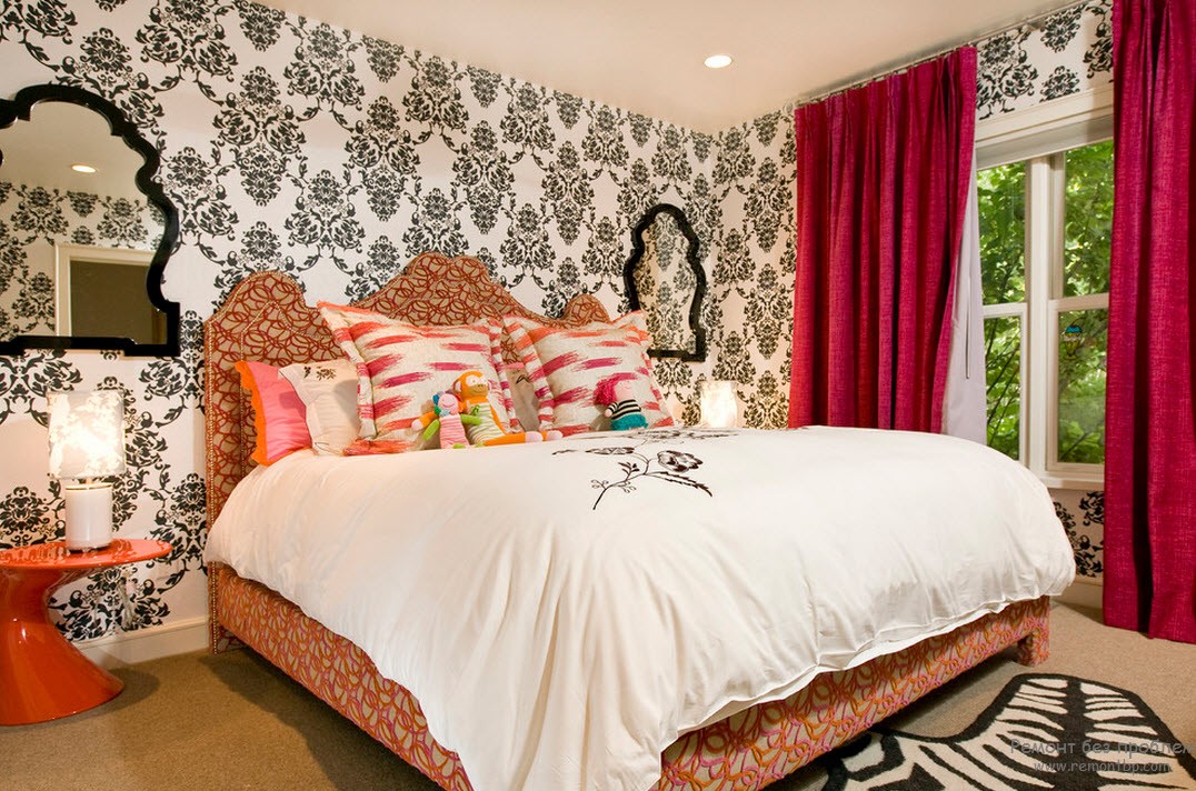 Оформив комнату контрастными обоями, не стоит пытаться сделать ее еще более яркой, применяя все цвета радуги для штор, покрывал и подушек. Ведь чрезмерное их присутствие в комнате может стать источником раздражения нервной системы, что может повлечь за собой расстройство сна.