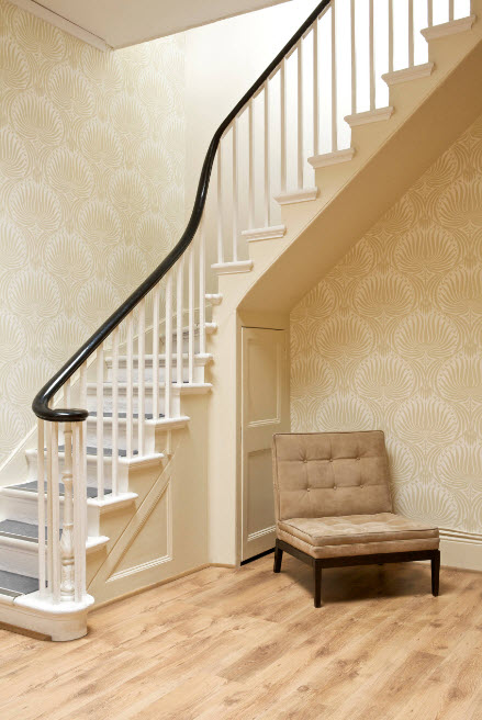Начнем с наименее популярного типа обоев для оклеивания стен в прихожей – бумажных. Несмотря на очевидные преимущества в высокой экологичности материала изготовления и готовых полотен, широком ассортименте расцветок и самой низкой стоимости, бумажные полотна редко используются в отделке прихожей. Непереносимость влаги и невозможность очищения бумаги играет решающую роль при выборе отделочного материала. Помимо этого, бумажные полотна довольно быстро выгорают от воздействия солнечных лучей и совершенно не терпят механического воздействия. К тому же, поверхность, на которую наклеиваются бумажные полотна, должна быть идеально выровнена (изделия имеют небольшую толщину листов).