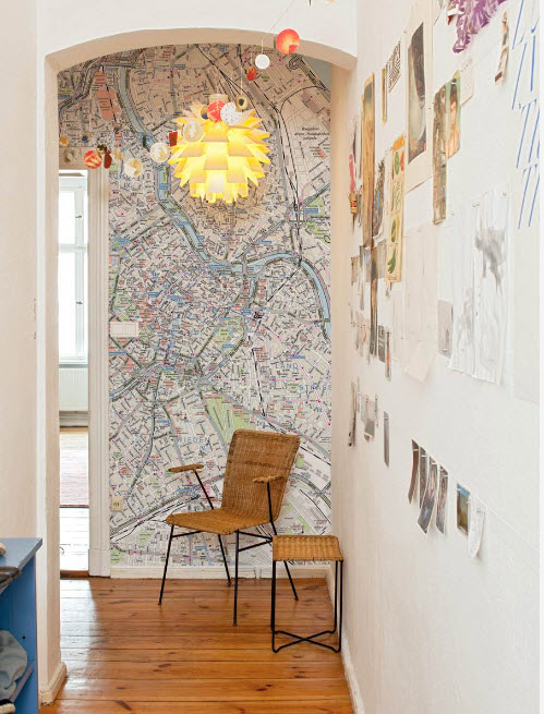 Фотообои не утратили своей популярности. В небольших утилитарных помещениях с их помощью можно создать интересные оптические иллюзии. Например, если в конце даже небольшого коридора наклеить изображение с уходящим вдаль пейзажем (лестницей, дорогой или мариной), то можно создать ощущение бесконечности пространства.