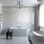 Интересная форма ванны может стать изюминкой интерьера. Для подобных моделей достаточно самой простой, нейтральной отделки. Они все равно будут фокусными центрами помещения.