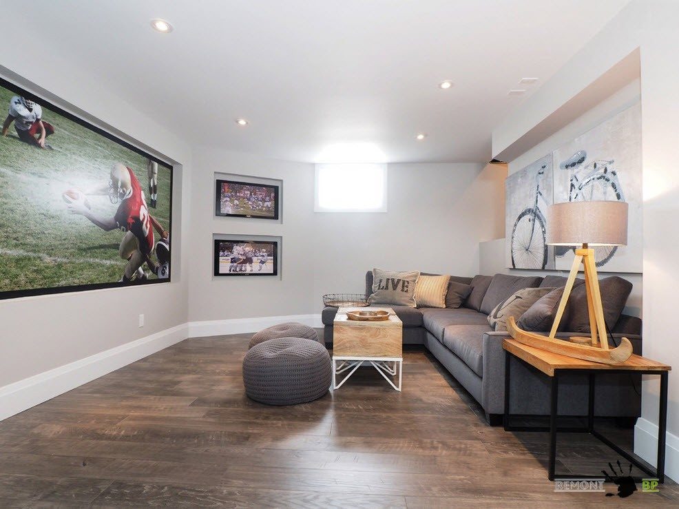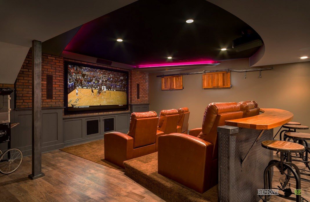 Возвращаясь к теме обустройства необжитых подвалов – домашний кинотеатр для такого помещения отлично подходит. Удобные мягкие кресла с регулируемым положением спинки, самая современная техника, небольшая барная стойка с табуретами для принятия напитков или легких закусок и приятная атмосфера, созданная с помощью универсальной отделки и разнообразной системы освещения.