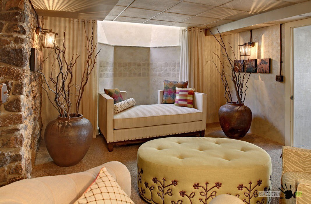 В комнате для отдыха вы можете проявить себя в качестве дизайнера и воплотить в обстановке зоны отдыха давние желания. Например, использовать огромный старинный чемодан в качестве журнального столика и, конечно, арт-объекта, использовать меховые покрывала для диванов или кресел, а может – повесить оленьи рога на стену. Интерьер гостиной будет зависеть от ваших предпочтений, смелости и финансовых возможностей – на стыке этих трех составляющих можно создать массу интересных воплощений, образов и собственных стилей.