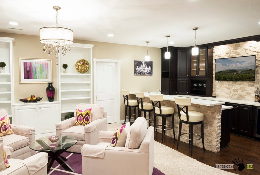 Мы все представляем себе комнату для отдыха по-разному. Для кого-то достаточно мягкого дивана и телевизора, другим нужен камин и удобные кресла. Кто-то не представляет гостиной без уголка для чтения и книжных стеллажей, а другим некуда поставить бильярдный стол или рабочее место для домашнего офиса или зоны творчества. Сложность наполнения комнаты для отдыха всевозможными функциями заключается еще и в том, что наши жилища обладают различными запасами пространства. В городской типовой квартире буквально негде развернуться и гостиная чаще всего ограничивается стандартным набором мягкой мебели и TV-зоны. А вот в частных домах городского и загородного типа уже проще – есть возможность обустройства дополнительных помещений – мансард и подвалов. Только на первый взгляд кажется, что из темных и необжитых помещений сложно получить комфортную и уютную комнату для отдыха или игровую зону. Мы продемонстрируем вам с помощью фото интересных дизайн-проектов, что нет ничего не возможного, если проявить терпение, приложить усилия и, конечно, вложиться финансово.