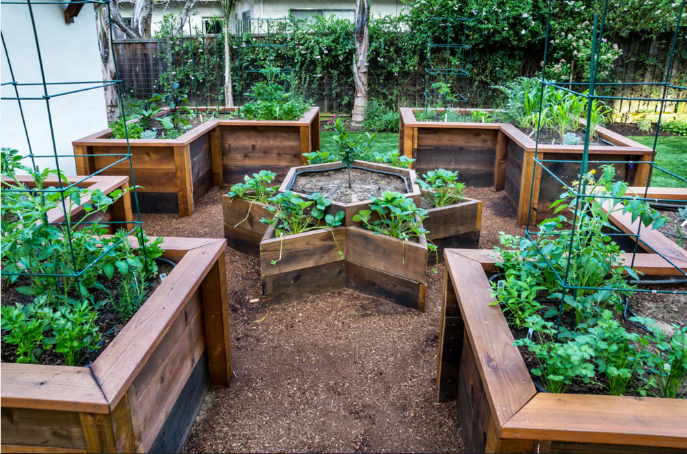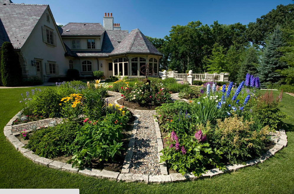 Если говорить о расположении грядок на территории перед домом или приусадебном участке, то глобально у вас есть два варианта – использование выкопанных или приподнятых клумб. Выкопанные грядки можно оградить при помощи камней. Кирпичей, деревянных досок – так ваши клумбы приобретут четки границы и дополнительную защиту от сорняков.