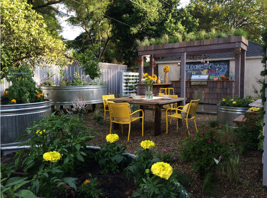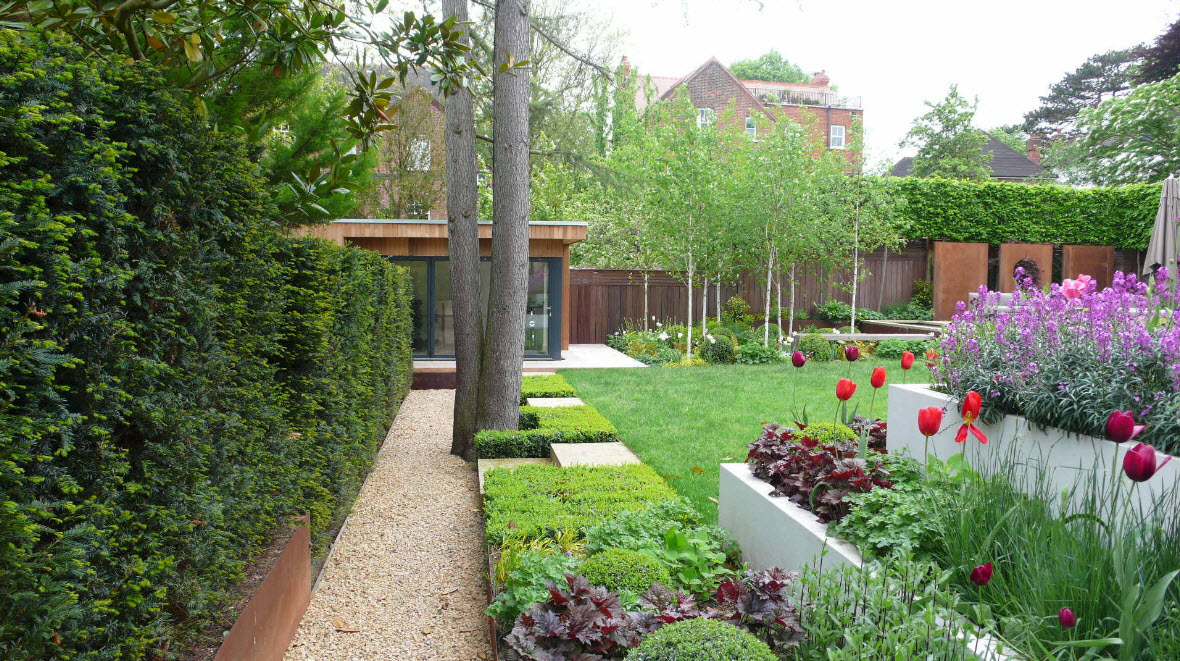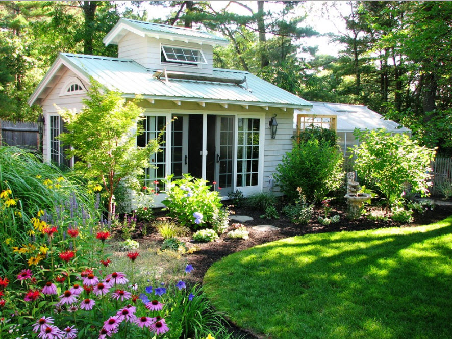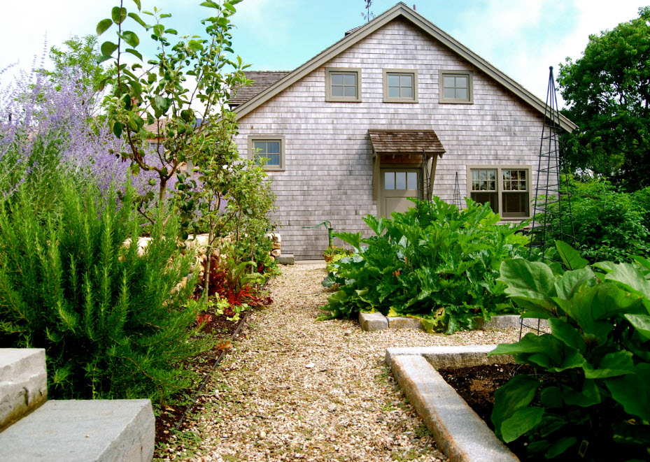 У многих наших соотечественников при словосочетании «дачный участок» невольно перед глазами возникает картинка с бесконечным количеством помидорных и огуречных грядок, старым сараем для инвентаря и беседкой, доставшейся от предыдущих хозяев земли. А тем временем современные ресурсы и журналы манят нас красивыми фото проектов ландшафтного дизайна, где оформление каждого сантиметра придомовой территории или сада продумано до мелочей. Российскому землевладельцу (даже самого крошечного участка) также хочется видеть свою территорию красивой, ухоженной, манящей зеленью и возможностью отдохнуть в тени на свежем воздухе. Но при этом и отказываться от грядок с зеленью, возможности сорвать спелые овощи прямо к семейному обеду мы не готовы. Возможно ли соединить практичную выгоду от выращивания овощей, плодовых деревьев и зелени с красотой ландшафтного дизайна? Безусловно, даже на крохотном участке земли, приютившимся между заборов частных домов на узких городских улочках можно создать свой зеленый оазис для отдыха на свежем воздухе. Необходимо будет приложить усилия, но задача вполне выполнимая. Надеемся, что внушительная подборка проектов, созданных в самых разных территориальных условиях, поможет вам вдохновиться на подвиги в собственном саду или приусадебном участке.