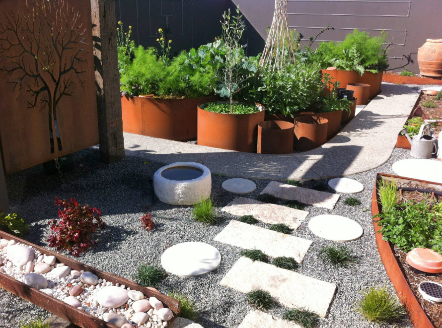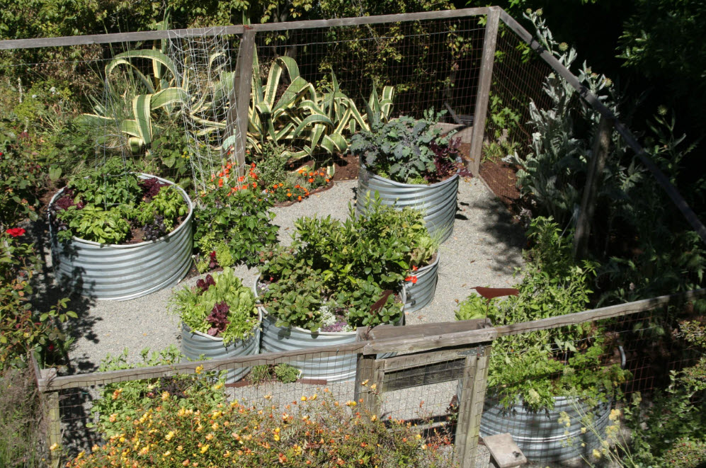 В продаже есть готовые сосуды для формирования грядок. Как правило, они представлены в круглых или овальных формах и выполнены из тонких листов нержавеющей стали. Это практичный, относительно недорогой и эстетичный способ организации грядок или клумб для высадки растений даже в условиях, далеких от возможности выращивания зелень и овощи в открытом грунте.