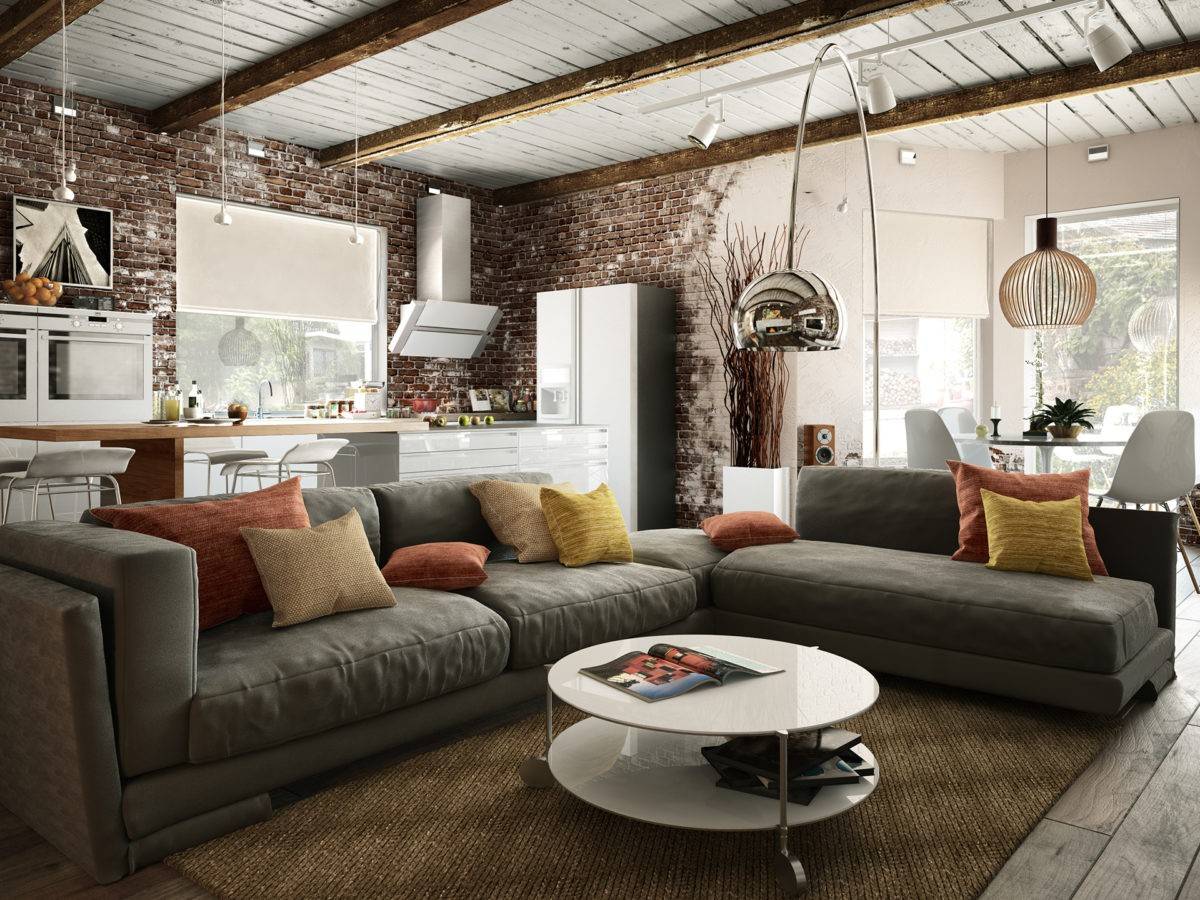 - Используйте кирпичные стены: оформите одну акцентную стену кирпичом, остальные оставьте нейтральными.