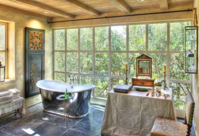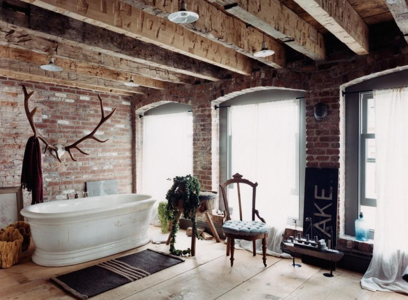 - Выбирайте отделочные материалы с эффектом потёртости: оставьте естественный цвет и структуру древесины, используйте плитку под дерево или натуральный камень для отделки.