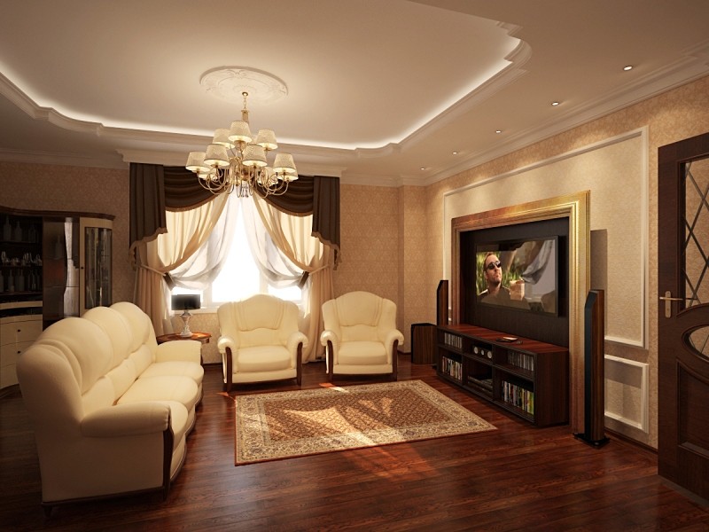 Ряд оптимальных цветовых решений для оформления гостиной: