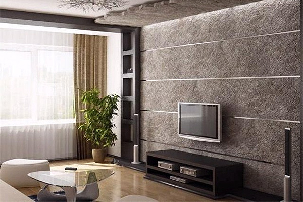 Также очень эффектным и популярным вариантом является комбинирование настенных покрытий, таким образом, одну стену можно сделать под камень или украсить фотообоями, а остальные светлыми однотонными.
