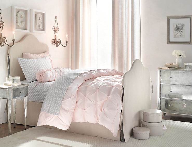Девочки, как и, впрочем, их мамы, с самых юных лет любят множество красивых модных вещей. Именно поэтому в комнате каждой маленькой леди должен быть шифоньер с платяным отделением и комод для белья. Самым оптимальным вариантом станет детский гарнитур, тогда вся мебель будет идеально сочетаться между собой. Можно приобрести белый спальный гарнитур и золотистым или розовым орнаментом. Красиво смотрятся сочетания нескольких пастельных тонов в мебели. Кровать всегда должна быть комфортной, так как покупается не на один год. Очень удачно будет смотреться балдахин, к которому можно прикрепить красивые поделки или игрушки. Матрасы и постельные принадлежности необходимо приобретать только из качественных натуральных материалов. Здесь тоже нельзя забывать об общем интерьере. Можно немного импровизировать, и выбирать тона темнее или светлее общей цветовой гаммы. В комнате девочки непременно должен быть стол и зеркало. Нелишними будут книжные полки или навесной шкаф. Очень важно продумать все до мелочей, чтобы ребенку было удобно и комфортно находиться в своей спальне.