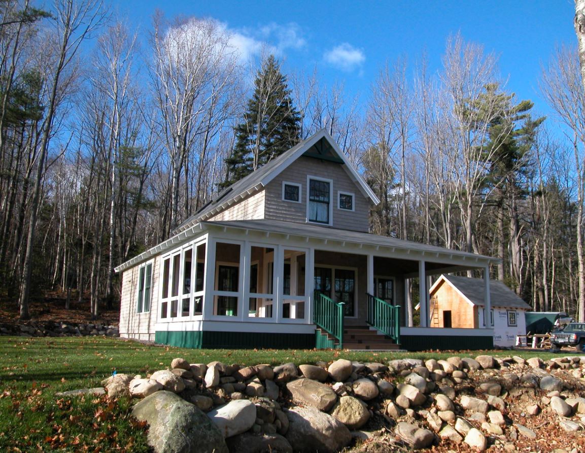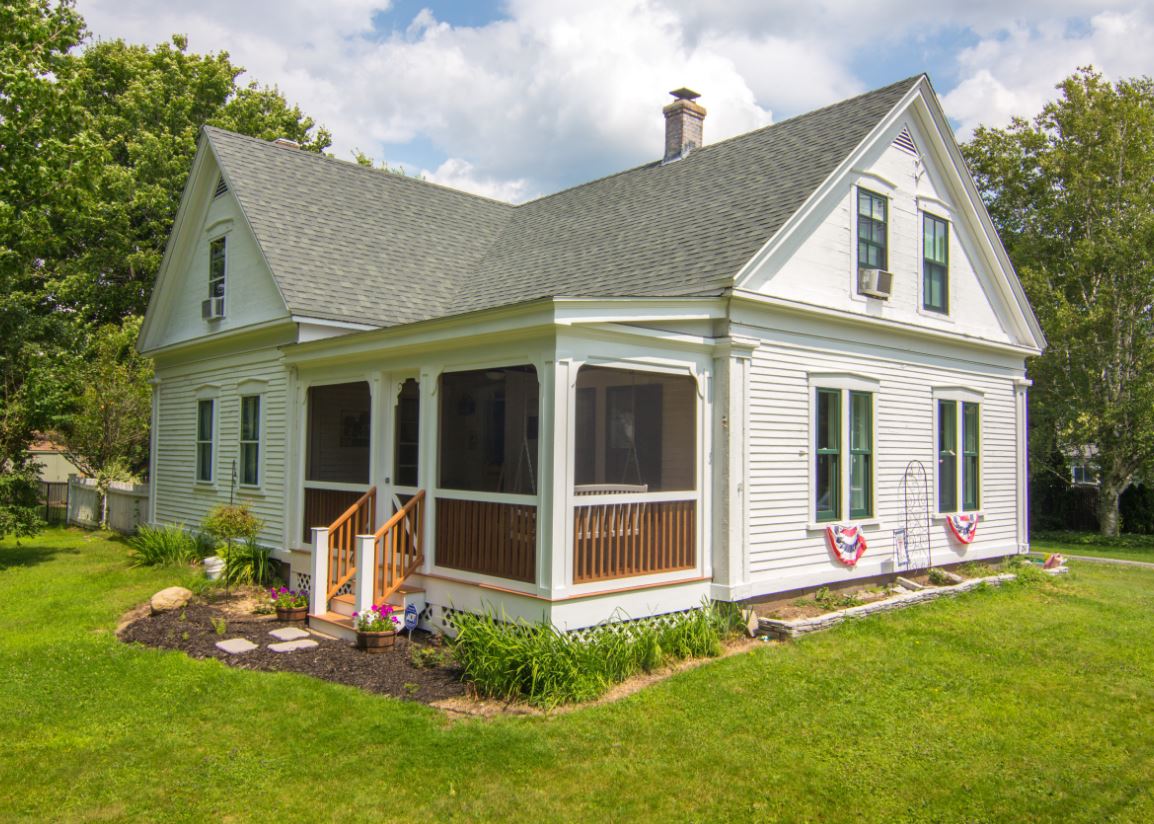 Закрытое крыльцо защищает вход в дом от погодных осадков, а также минимизирует потерю тепла. Часто такие пристройки дополнительно утепляют.