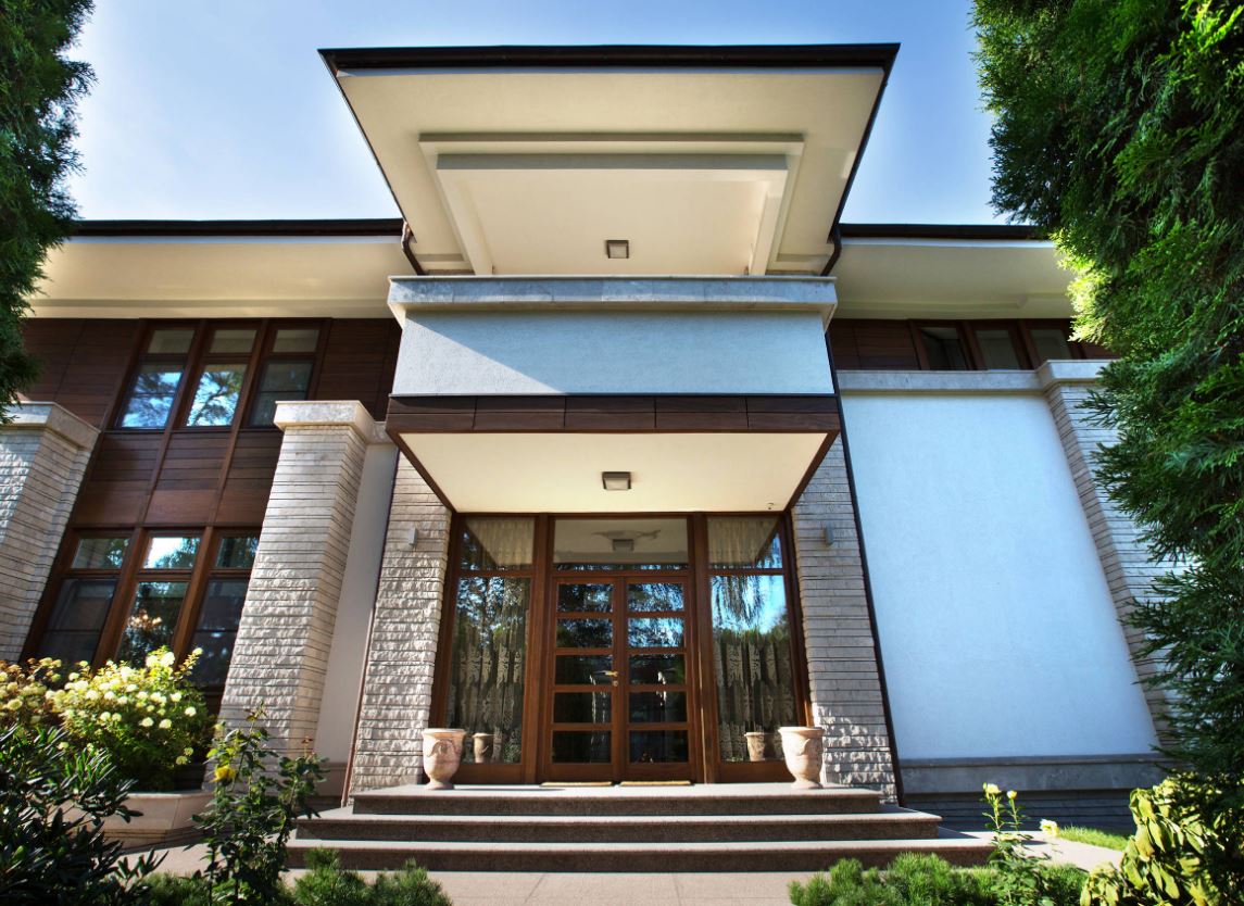 Как правило если в доме крыльцо с навесом, то сам навес является продолжением крыши. Он выполняет функцию защиты крыльца от снега, дождя и других осадков. Козырек размещают на высоте 20-ти и более сантиметров над входной дверью. Такой элемент у входной двери не только защищает вход, но делает вход в дом комфортным.