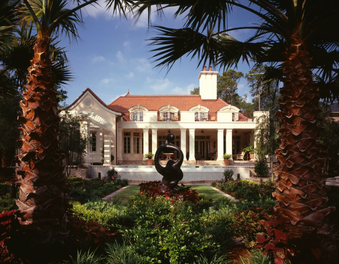 Овальное крыльцо придает дому изящности и эстетичности, сглаживает углы дома. Такие конструкции выполняют из кирпича или камня. Круглые ступени позволяют комфортно подниматься со всех сторон.