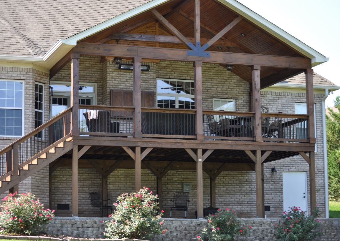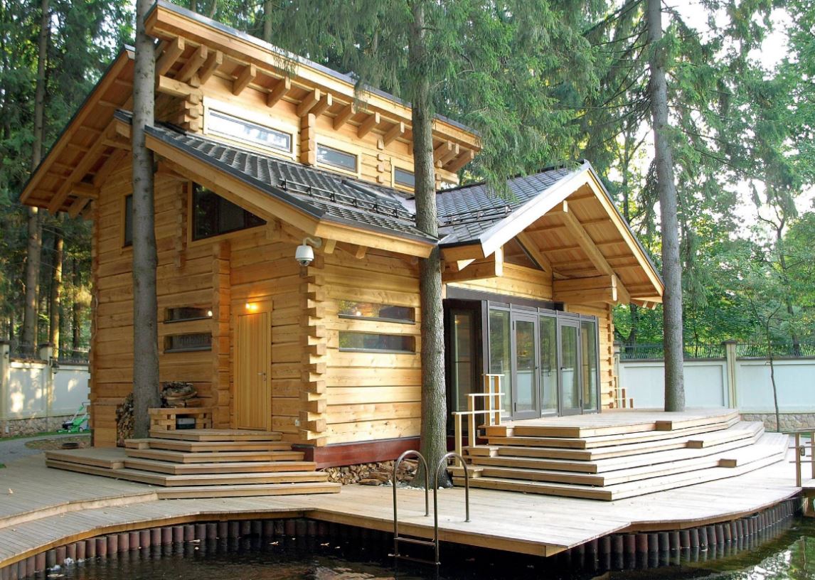 Крыльцо выполняют из дерева, бревна или бруса. Чаще всего деревянное крыльцо покрывают навесом, потому что природные осадки негативно влияют на материал, из которого выполнено крыльцо. Если в планах у дома иметь открытое деревянное крыльцо, то его покрывают в несколько слоев специальными пропитками, чтобы дерево не испортилось.