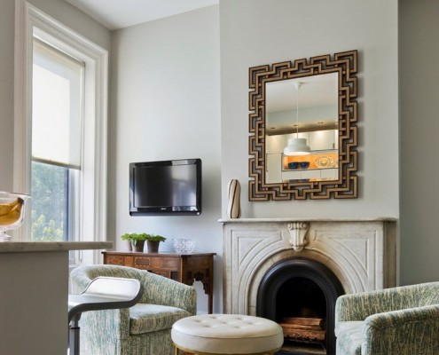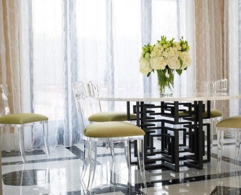 Главное в греческом стиле, это простор. Поэтому не следует перегружать комнату лишней обстановкой. Мебель должна быть деревянной и окрашена в один из цветов интерьера. Стулья и диваны, удобные с обивкой из простых натуральных тканей. Для удобства разложите подушки с геометрическим рисунком. Кожу, велюр и шелк исключите сразу. Столики лучше невысокие, на выгнутых наружу ножках в виде лап. Столешницы и скамейки могут быть из мрамора светлых сортов, белый , серый или голубой.
