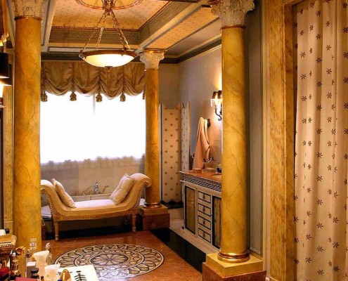 Период Эллинизма, это известная всем Эллада и забота о пышности. Но в греческом исполнении пышность выражалась в более просторных помещениях, искусных украшения и тонком вкусе. Это простота и элегантность без дорогих украшений. Только в период Римского владычества в греческих домах стало появляться золото и дорогие предметы мебели и декора. Но это уже была культура другой страны, которая завоевала Грецию.