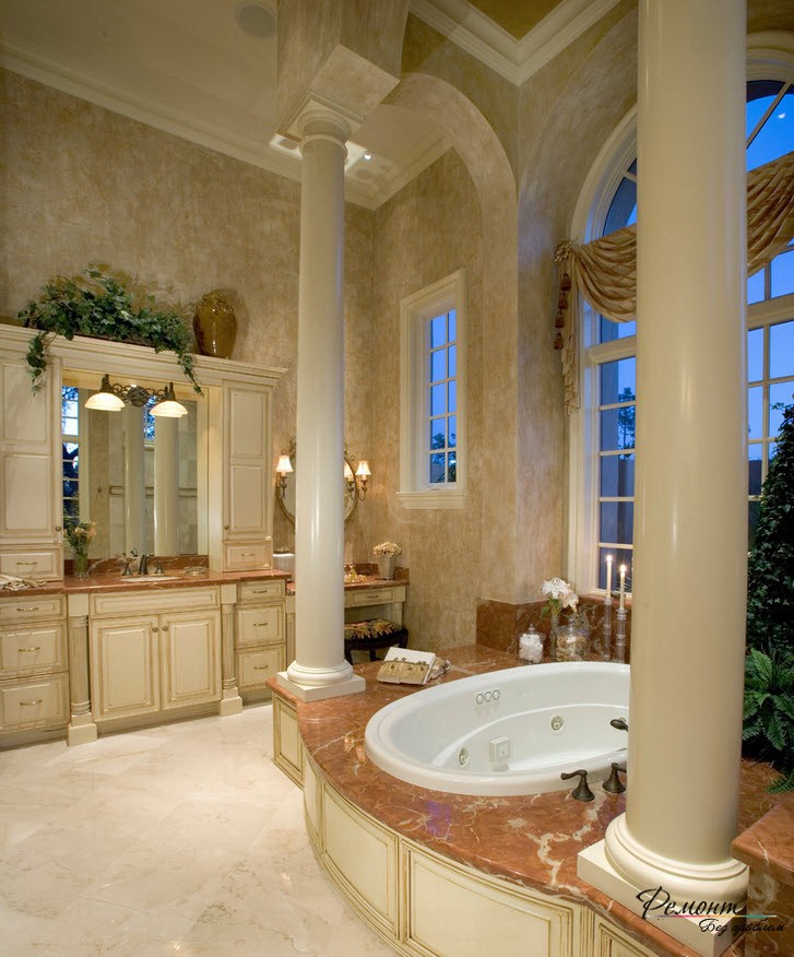 Самые характерные украшения для греческого стиля, это колонны. Затем идут статуи богов и героев мифологии. Но если у вас нет возможности поставить такой декор, то не расстраивайтесь. Есть много предметов, которые характерны для Греции. Вазы могут быть как большие напольные, так и маленькие типа амфор. Желательно, чтобы они не были покрыты глазурью, а имели матовую, шершавую поверхность. Украшением может служить рельефный узор или роспись. В помещении желательно иметь портьеры и другие тканевые драпировки. Они должны быть из легкой белой или очень светлой, натуральной ткани и иметь по краям узор. Наиболее характерными являются широкие вертикальные полосы с геометрическими рисунками по краям.