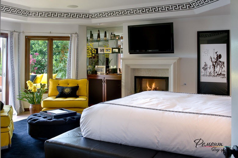 Поскольку непросто подобрать для драпировки ткань с нужным рисунком, то его несложно изготовить самостоятельно. Можно нарисовать канву по краям полотна. Но проще на полоске немного иного оттенка нанести узор и потом пришить. Сделать это можно с помощью специальных красок для росписи по ткани. Они бывают разного типа и свободно продаются в магазинах. Шаблон геометрического узора вырежьте из полоски тонкого пластика. На вазах также можно самостоятельно сделать роспись или несложный рельеф вылепить из гипса. Если вы хорошо владеете кисточкой, то нанесите узор на стены и потолок. Только не увлекайтесь, декора такого типа должно быть немного. При оформлении интерьера в греческом стиле надо помнить одно, лучше меньше, чем больше. Пространство и свет главные в любом оформлении. Поэтому не нагружайте помещение мебелью. Гостеприимство по-гречески, это чтобы удобно разместились все, кто пришел, а не обильная еда на столе и дорогие украшения.