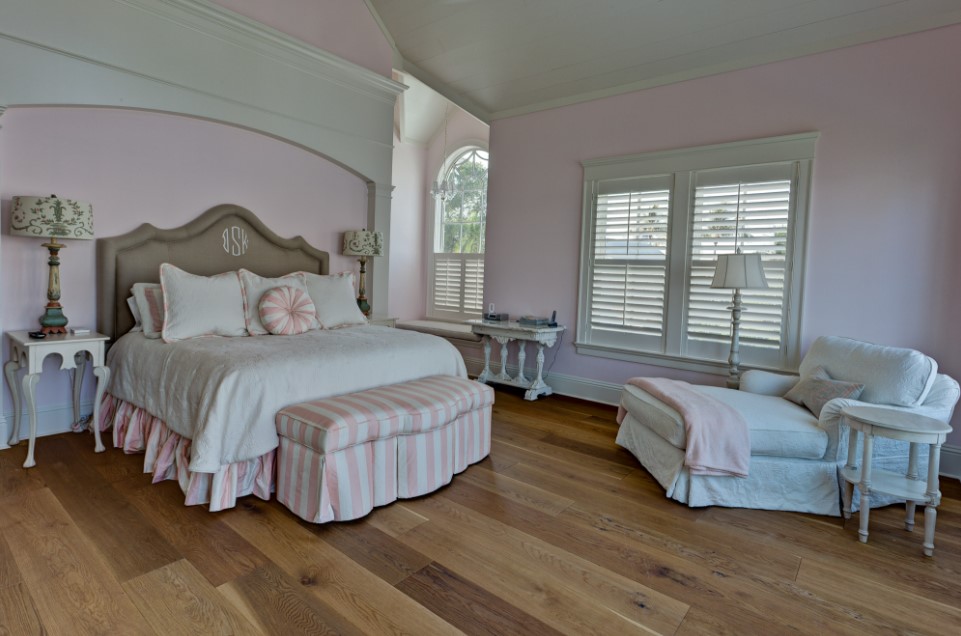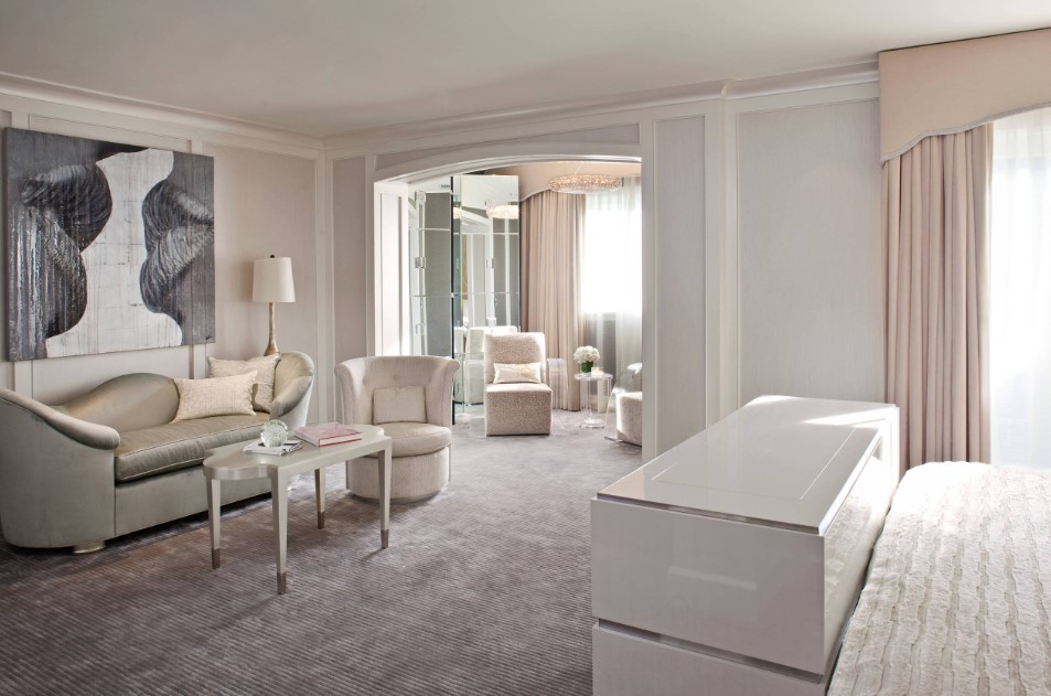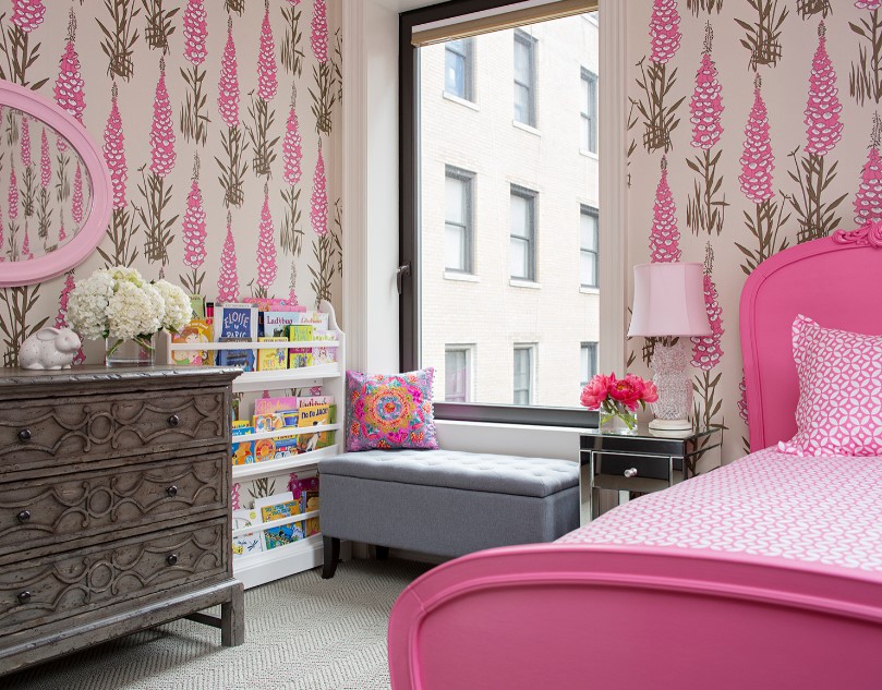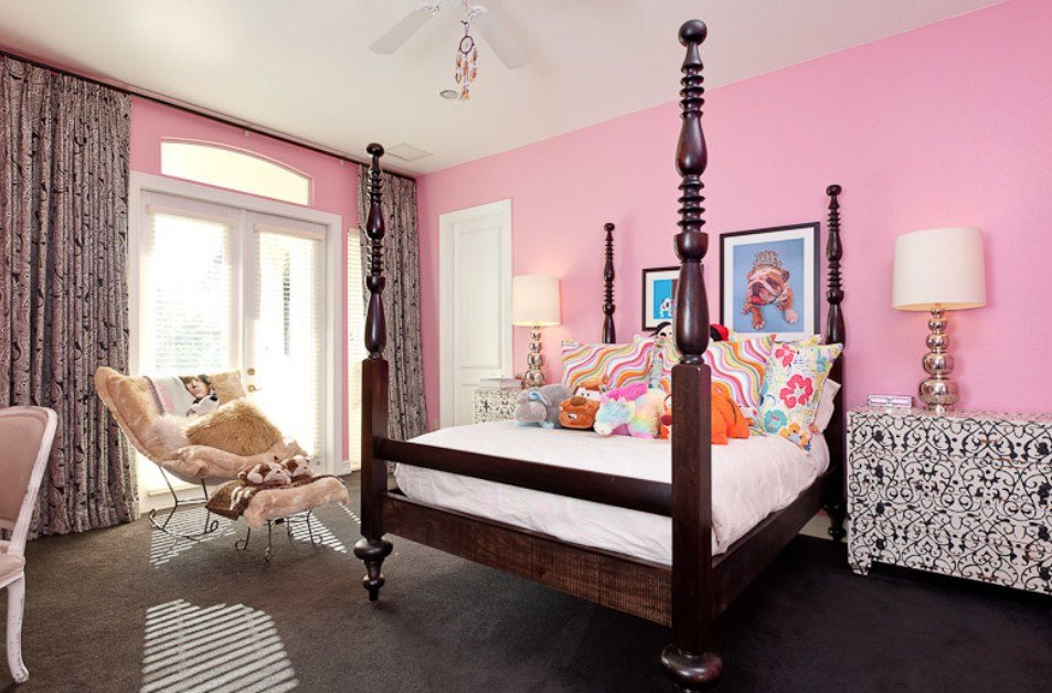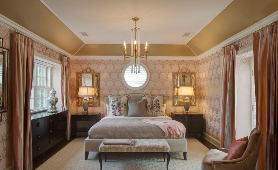 Светлая, пастельная и бежевая палитра в таком интерьере станет хорошим дополнением для оформления классического дизайна. Розовые или серо-розовые обои в женской спальне можно разбавить яркими цветными или черно-белыми акцентами в текстильных предметах. Это освежит комнату, и даже привнесет в нее некую долю гламура и драматизма.