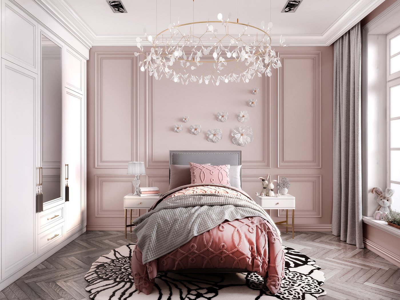 Оформляем серо-розовую спальню
